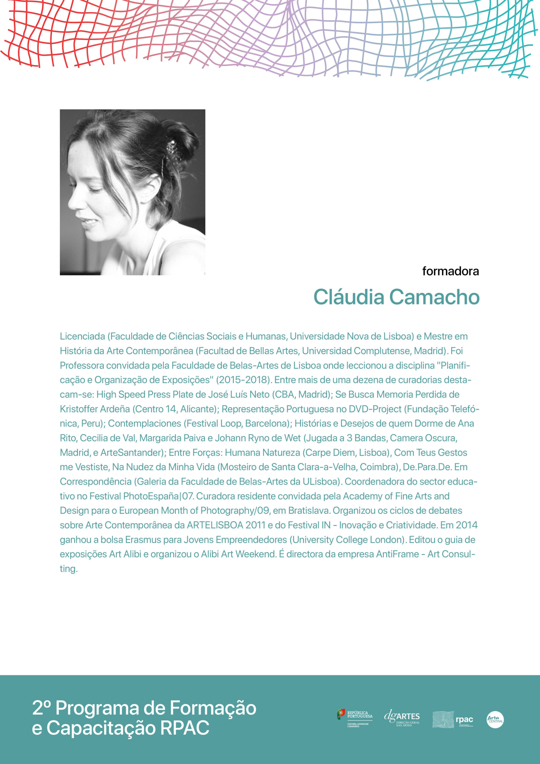 Esta iniciativa da Direção-Geral das Artes (DGARTES), operacionalizada pela Arte Central, visa sensibilizar e capacitar técnica e teoricamente os recursos humanos das entidades que integram a rede nas áreas da criação, desenvolvimento e montagem de exposições, inclusão, acessibilidade e representatividade, curadoria de arte contemporânea, comunicação cultural e desenvolvimento de públicos, questões fiscais e jurídicas na cultura, coleções e conservação preventiva, gestão cultural, mediação cultural e inovação digital em equipamentos culturais.